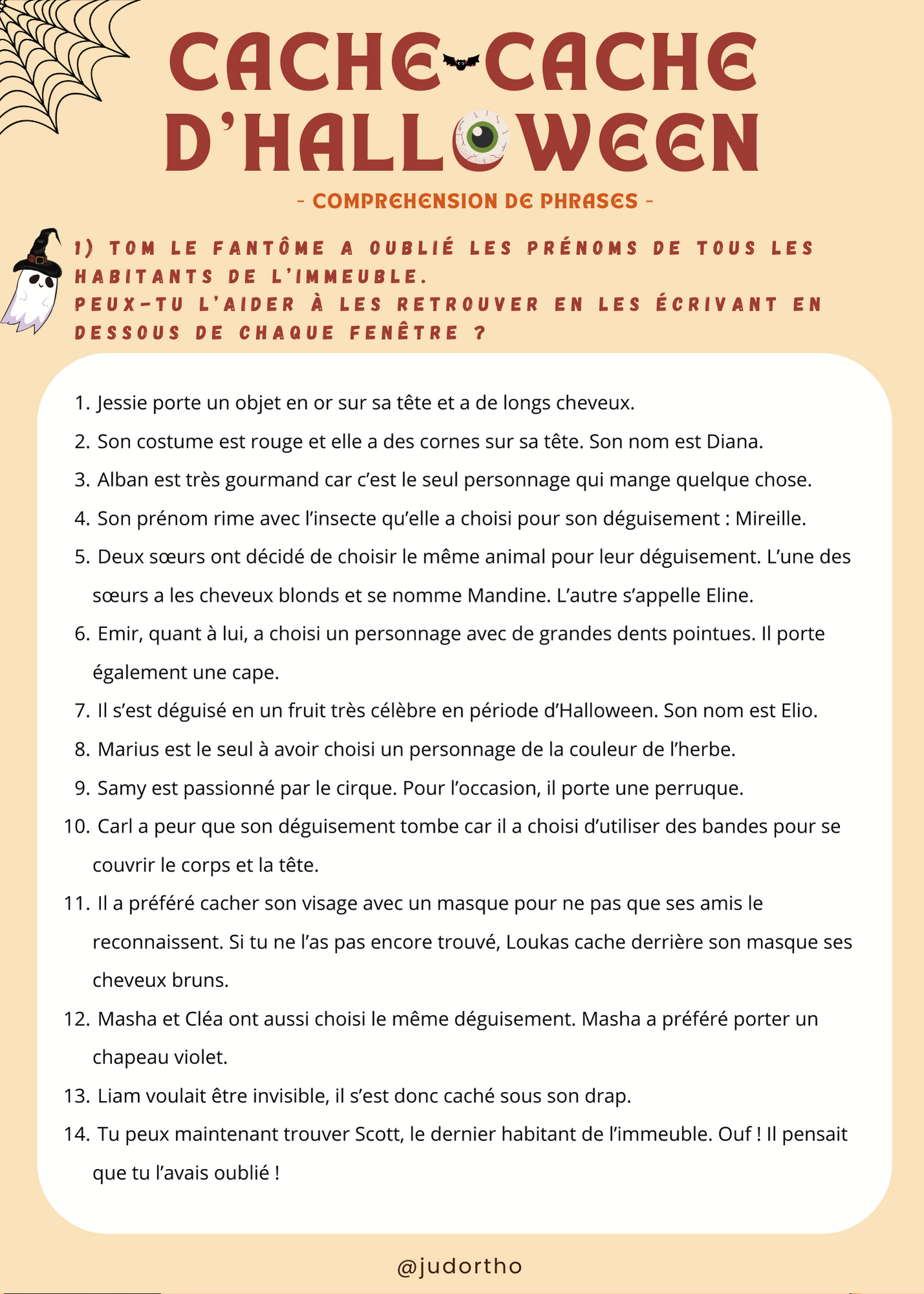 PDF 1 : Le patient doit retrouver les prénoms des personnages de l’immeuble que Tom le fantôme a oublié