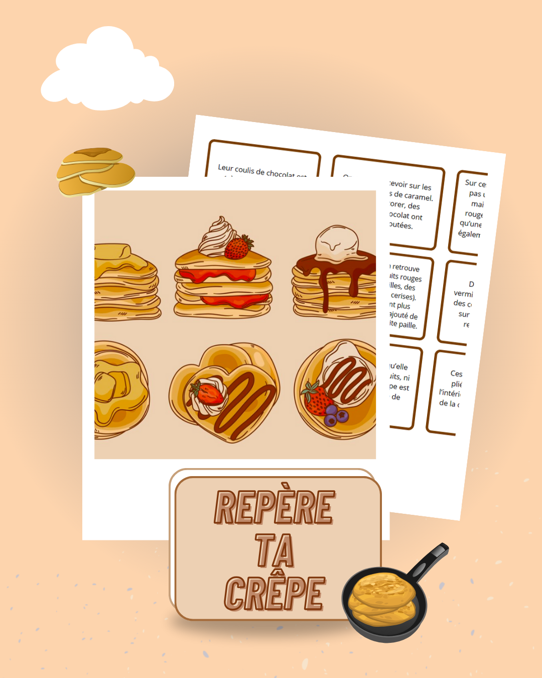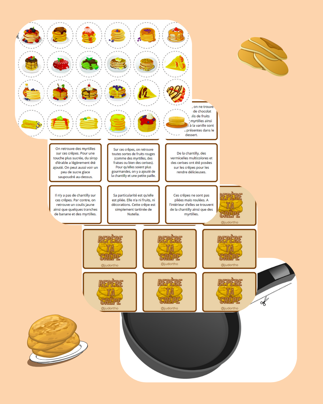 Après lecture et compréhension de la carte piochée, placer les bonnes crêpes présentes dans la poêle > dans l’assiette, pour pouvoir les déguster !