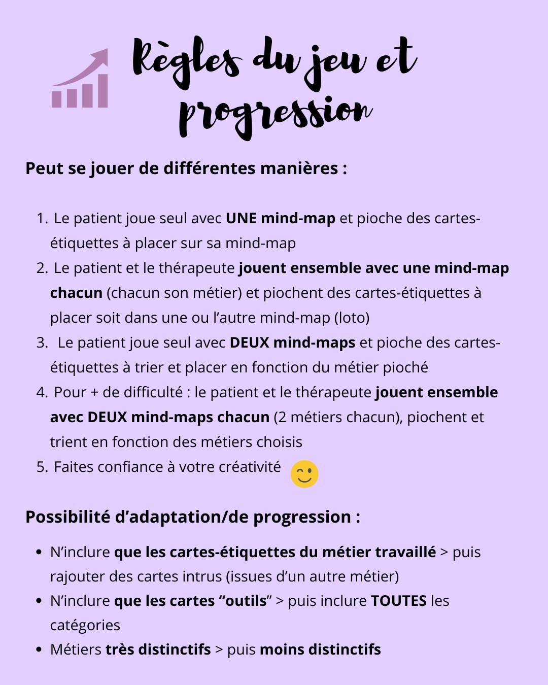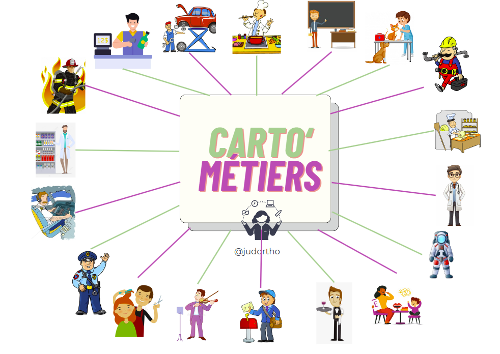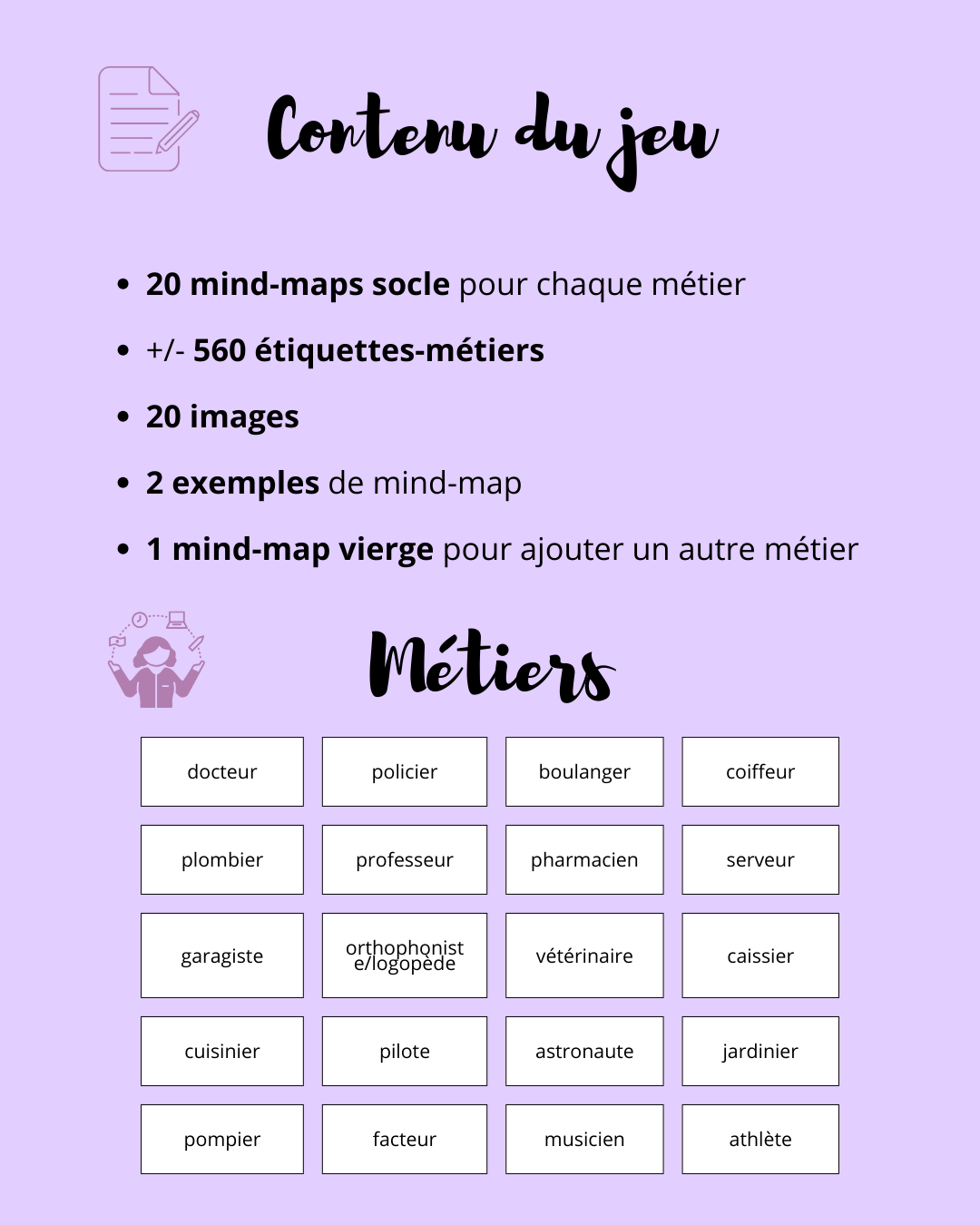 1 PDF permettant de travailler le LEXIQUE des METIERS en versant réceptif et expressif (associations sémantiques & catégories sous forme de mind-map visuelle)