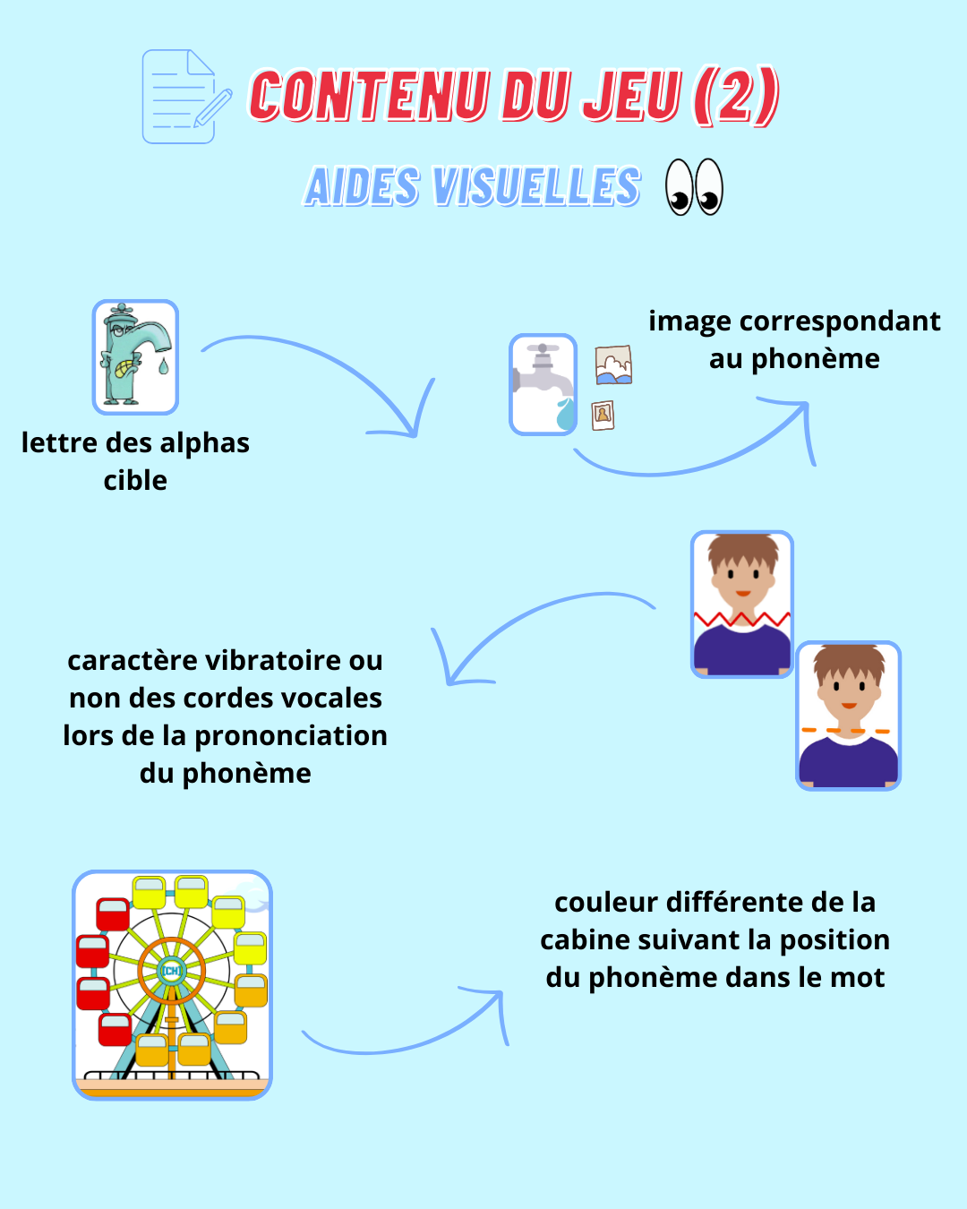 Il présente plusieurs aides visuelles pour aider le patient à visualiser le son-cible, comme par exemple :