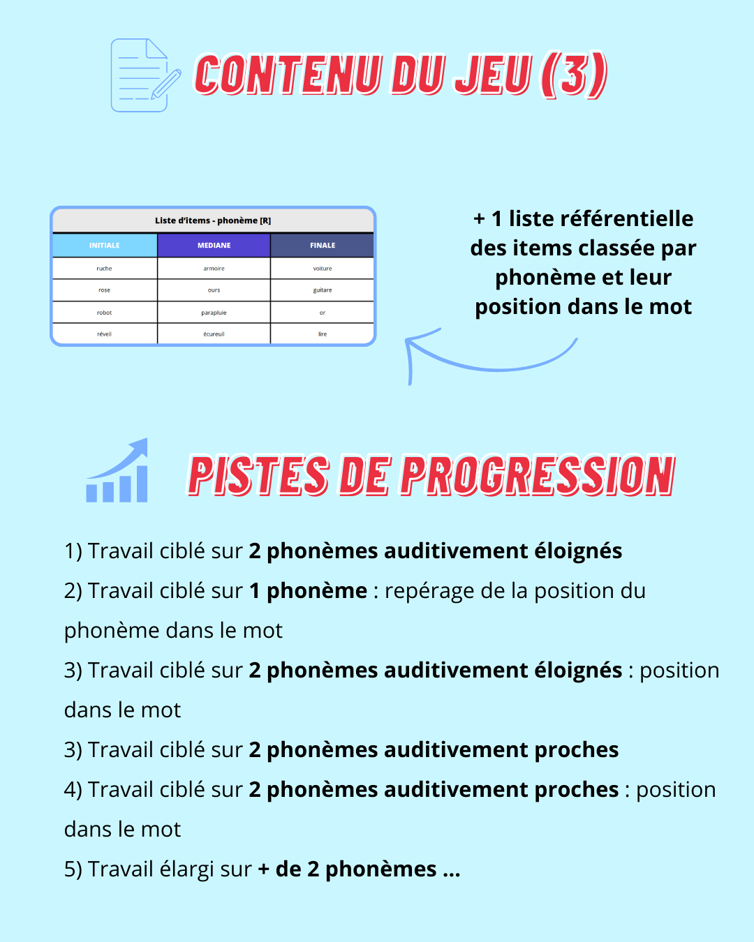- 1 liste référentielle des items classée par phonèmes et leur position dans le mot