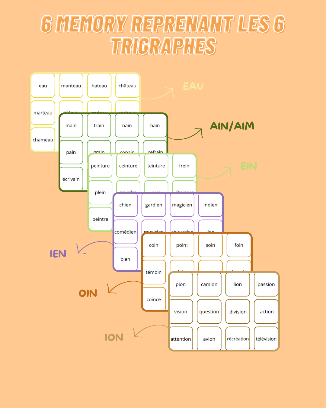Trigraphes abordés : eau/ain/aim/ein/ien/oin/ion