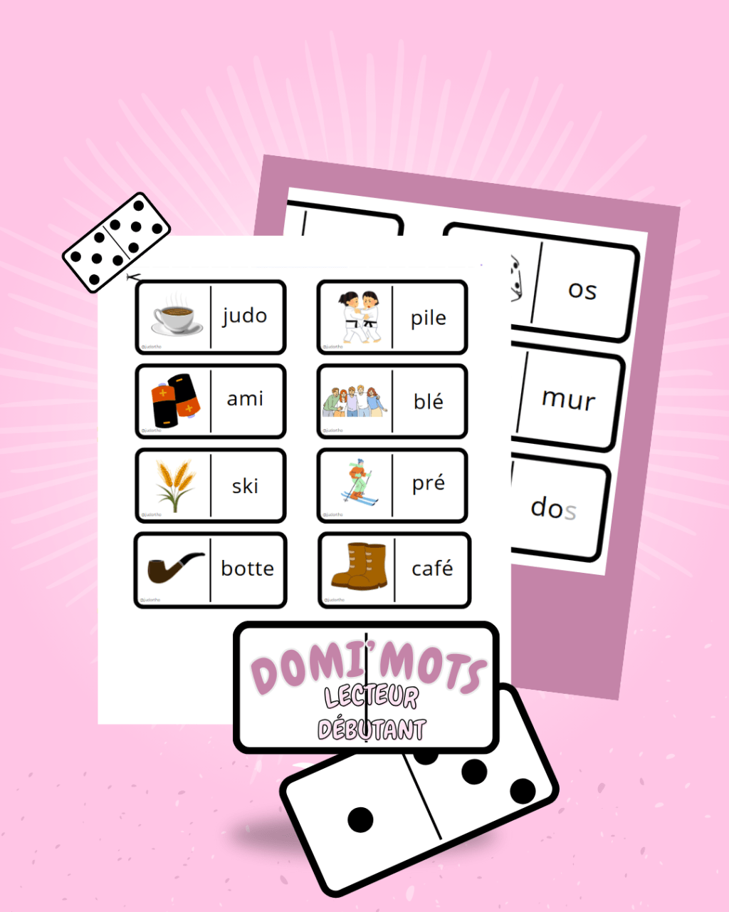 Le but étant d’associer chaque mot lu à chaque illustration. A la fin, aucun domi’mots ne doit rester afin de former un jeu complet.