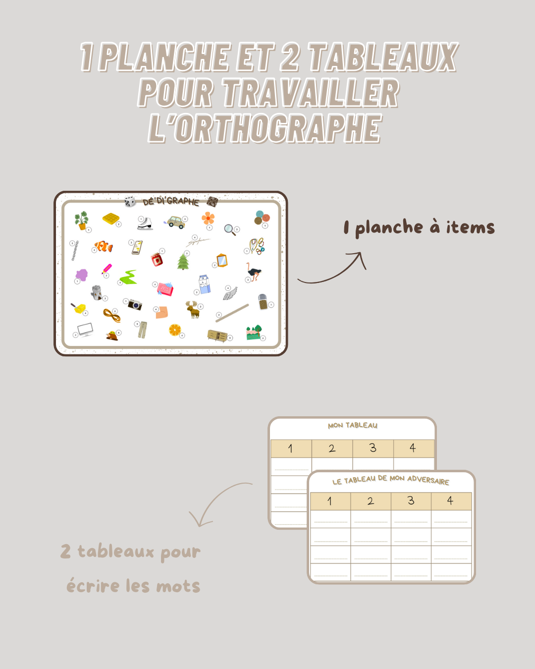 - 2 tableaux pour orthographier les mots