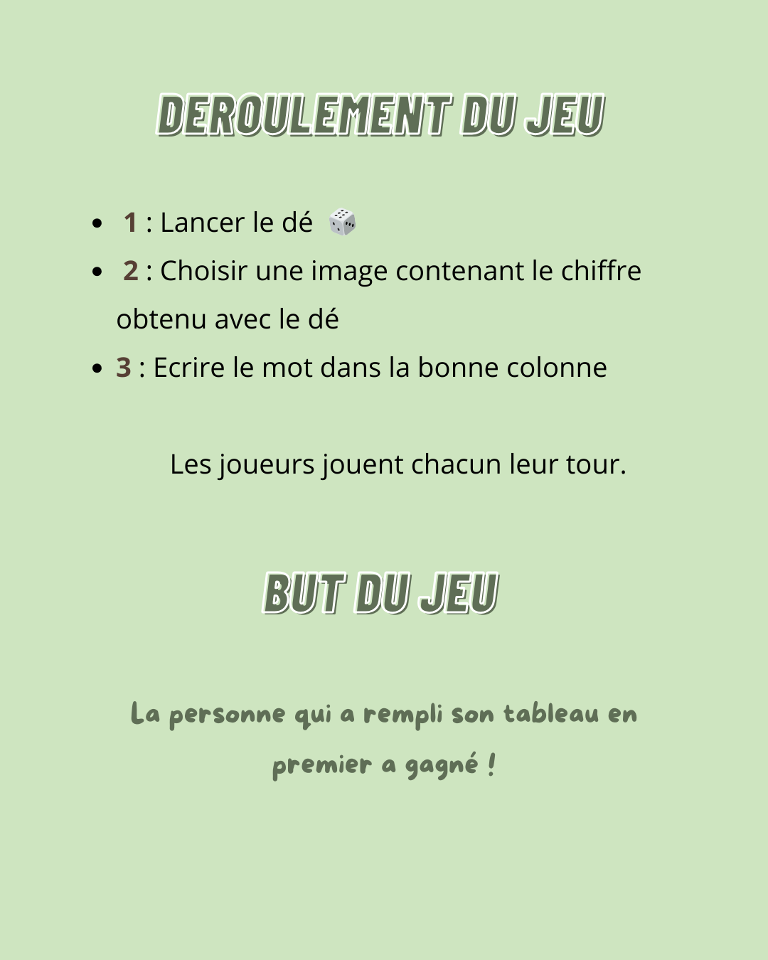 - Ecrire le mot dans la bonne colonne de votre tableau