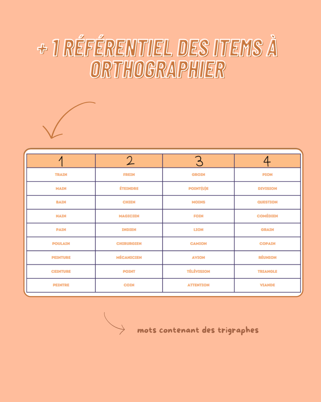 Il s’agit ici d’un PDF permettant de travailler plus précisément sur l’orthographe des trigraphes