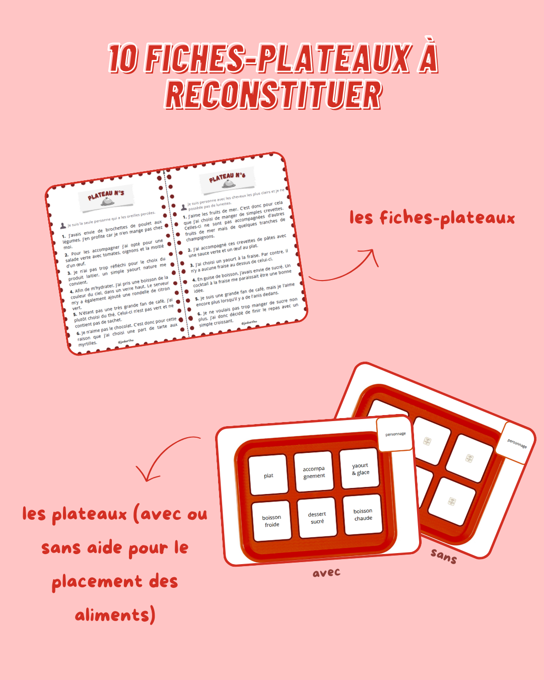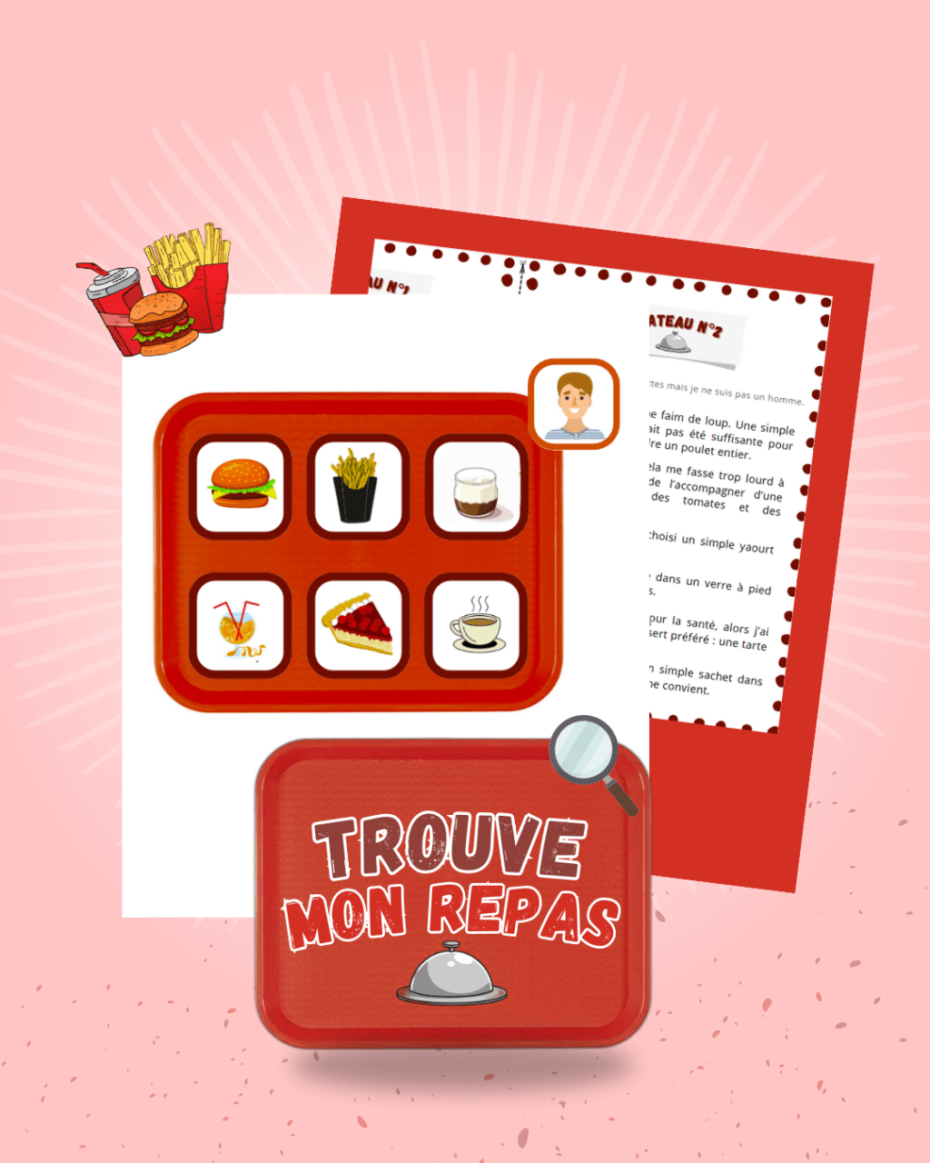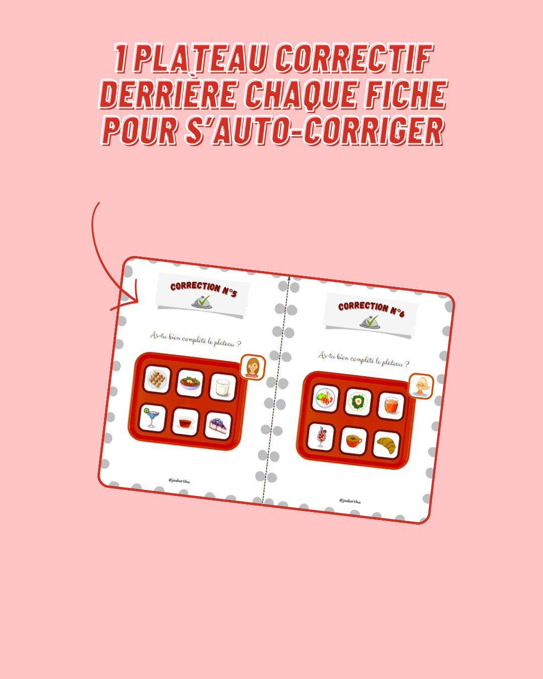 - 10 fiches-repas à lire (verso = le repas ; recto = la correction)