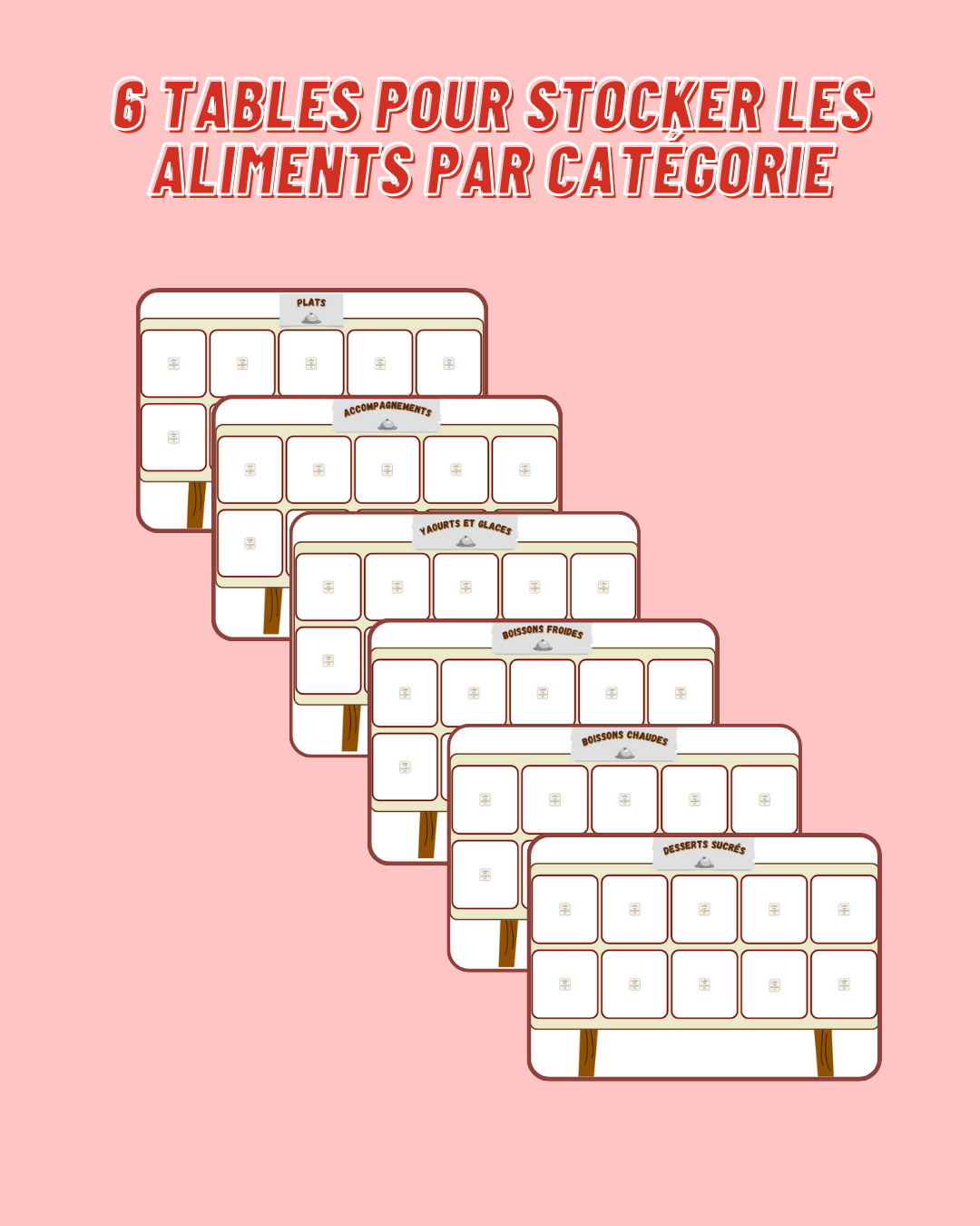 - 6 tables permettant de garder/visualiser les aliments le temps que le patient les place sur les plateaux