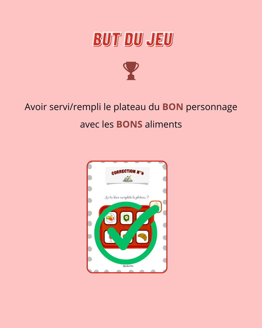 - 10 plateaux-repas à reconstituer (avec les bons aliments et les bons personnages)